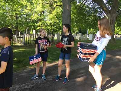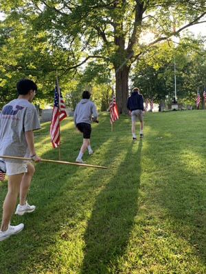 Memorial Day starts very early in the morning for the members of the Rayson-Miller Post and that means for the members of Teens for Veterans as well. First on list is to put all the US Flags out on Flag Avenue in the cemetery before the ceremony.