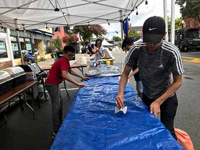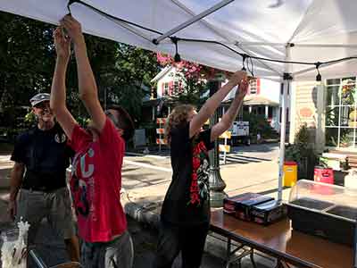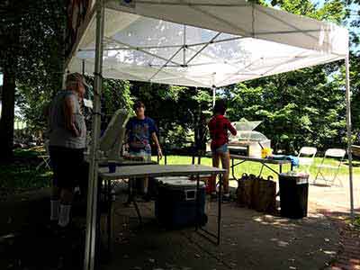 Each year the Town of Pittsford NY puts on an all day and into the evening, Food Truck & Music Festival down Main Street in the town of Pittsford. Food truck vendors offer their delicious fare and artists perform for the public. A fun event for all ages. Rayson-Miller Post 899 sets up their food tents and offers such items as Italian sausages with peppers and onions, hots and hamburgers and of course a variety of beverages. Teens for Veterans help with setting up, serving and tearing down after the event.