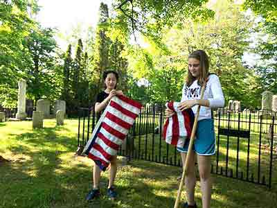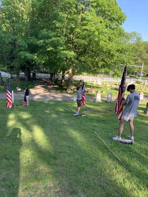 Memorial Day starts very early in the morning for the members of the Rayson-Miller Post and that means for the members of Teens for Veterans as well. First on list is to put all the US Flags out on Flag Avenue in the cemetery before the ceremony.