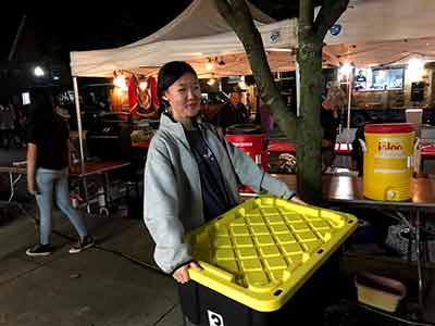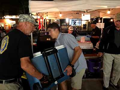 Helped with the loading of the grill and other essential items for the Pittsford Food Truck & Music Fest the night before the event. The Post has a golf cart and trailer that we loaded.